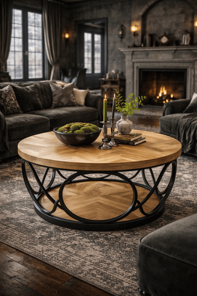 1. HOGWARTS STYLE ROUND COFFEE TABLE – https://amzn.to/3ZAIwhX