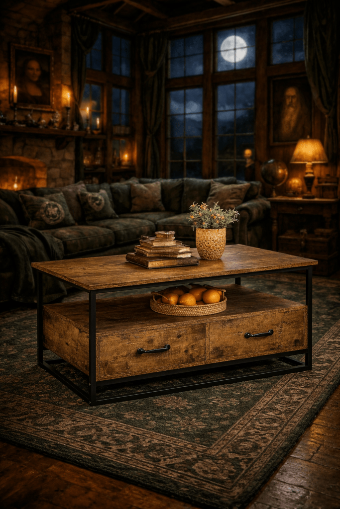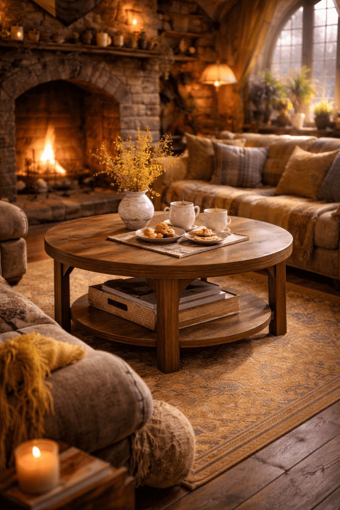 6. HOGWARTS STYLE FARMHOUSE COFFEE TABLE – https://amzn.to/4aP9GIb