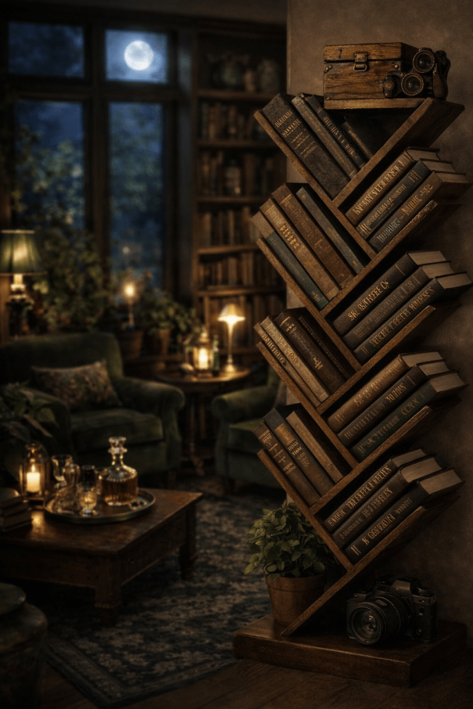 5. HOGWARTS STYLE ANGLED BOOKSHELF – https://amzn.to/4aAL2d7